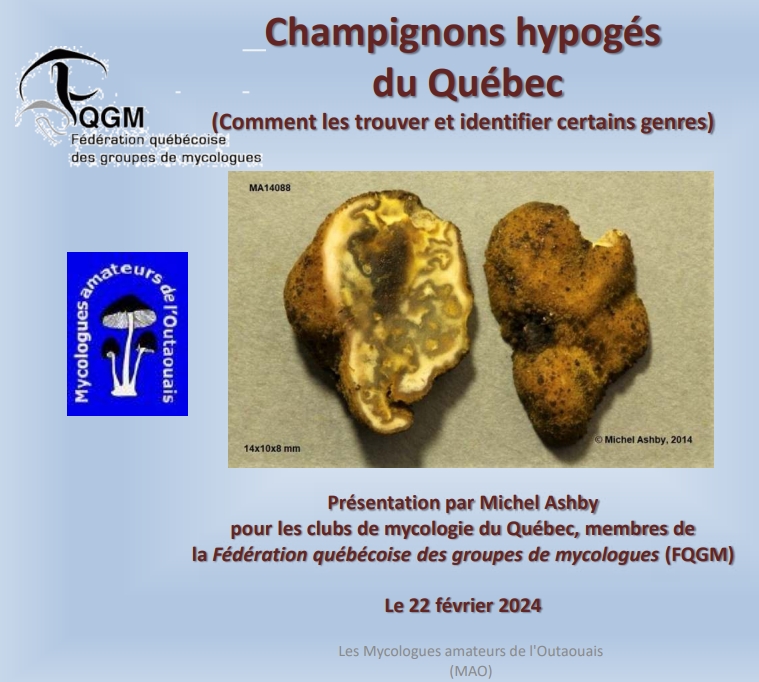 champignons lamellés et porés du Québec- Présentation de Jonathan Jensen-Lynch aux membres de la FQGM ![]() |